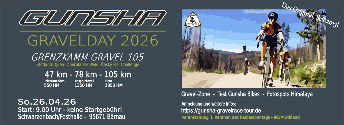 Für die Teilnehmer und Interessierten der Gunsha Challenge möchten wir euch herzlich zu unserer Veranstaltung Gunsha Gravelday – Grenzkamm Gravel 105 einladen. Gleichzeitig dient das Event als Anregung und Trainingsmöglichkeit bis zum Start der neuen Serie im Herbst. Zur Auswahl stehen drei Strecken: Die 47 km-Runde mit 550 Höhenmetern ist ideal für Einsteiger und Genussfahrer, technisch leicht und perfekt, um die Region kennenzulernen. Die 78 km-Strecke über 1.350 weiterlesen…